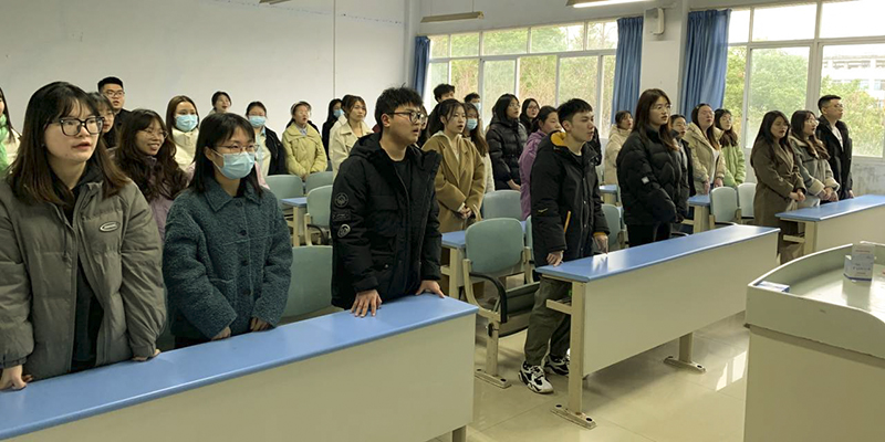 开学第一周的班会,同学们正在唱响共青团团歌。