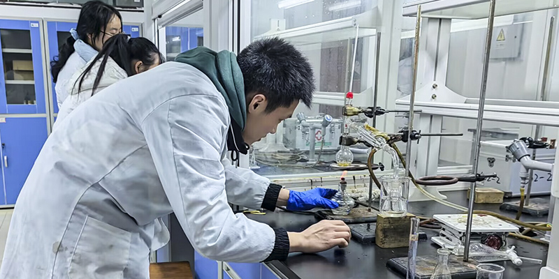 实验室里,老师正带领同学们聚精会神地进行实验。