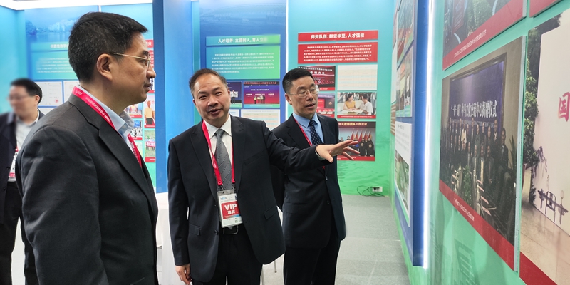 我校在重庆国际博览中心N5馆重庆专区设立展位,从师资队伍、人才培养、学科科研、开放办学等方面集中展示了我校近五年办学成果、发展特色,吸引了广大观展群众驻足观看。参展期间,重庆市教委主任刘宴兵、重庆市高等教育学会会长严欣平、福建省教育厅副厅长刘健,以及兄弟院校领导先后来到我校展区参观交流。