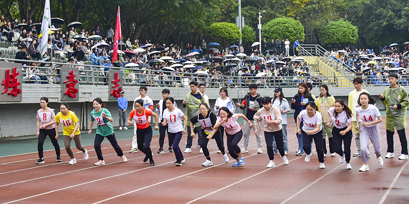 在4×100、4x400的接力赛道上,各学院的运动员奋力拼搏、激烈角逐,接力棒不断交递,传递出长师人自强不息、所向披靡的体育精神。在一阵阵的呐喊声中,接力赛跑将整个运动会推向高潮。裁判员凝神专注场上赛况,有力发号施令;志愿者积极维护比赛秩序,往返赛场做好各项后勤工作;医疗保障人员驻守赛场医疗点,时刻待命;主持人追踪播报比赛进程,热情洋溢地宣读着各学院撰写的加油稿,行健体育场热闹非凡。