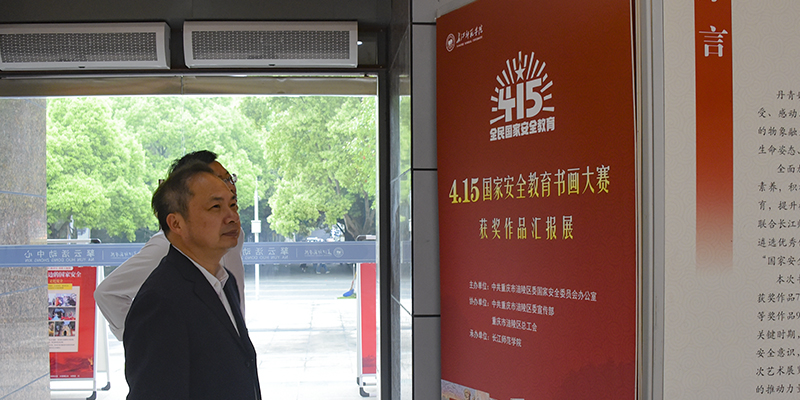 市委国安办二处处长翁家玲,涪陵区委书记王志杰、副书记喻显镔,我校党委书记黄大勇、副校长袁革、纪委书记赵骏等出席了“争当红岩先锋 维护国家安全”演讲比赛,参观了主题书画展览。在现场参观书画作品展时,王志杰高度肯定了学校全民国家安全教育系列活动,认为做到了学校抓安全工作扎实、师生专业技能扎实、国家安全意识学得扎实。