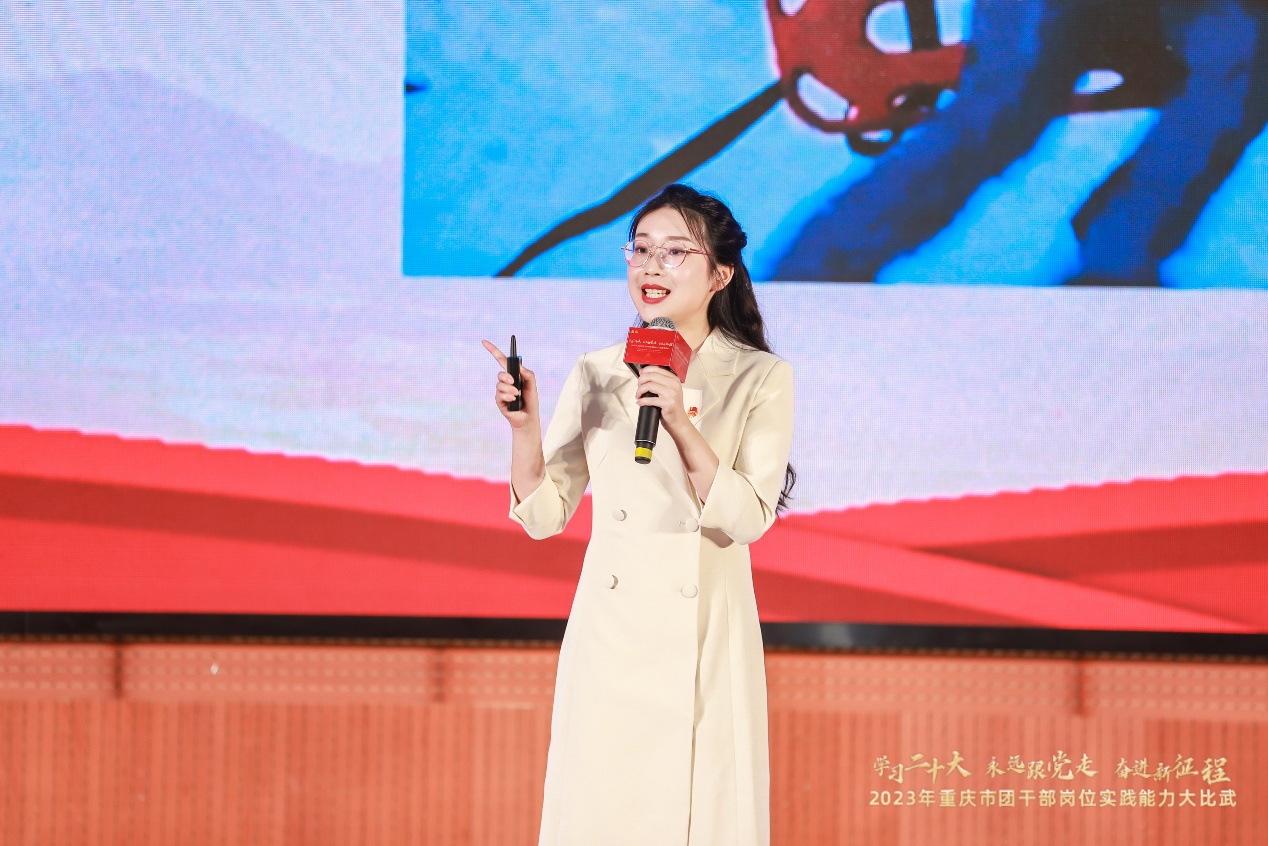 日前, 2023年重庆市团干部岗位实践能力大比武学校专场赛在重庆工业职业技术学院举行。经过笔试、微团课展示、命题演说、现场答题四个环节的激烈角逐,我校团干部谭喻荣获三等奖。