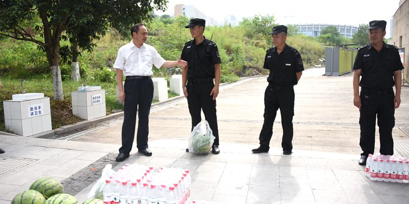夏日炎炎,骄阳似火,入伏后的涪陵逐渐进入了高温模式。7月13日,党委书记黄大勇、校长杨燕滨、副校长杨双率队慰问暑期坚守一线的教职工和留校学生,给他们送去了清凉解暑的西瓜、矿泉水。