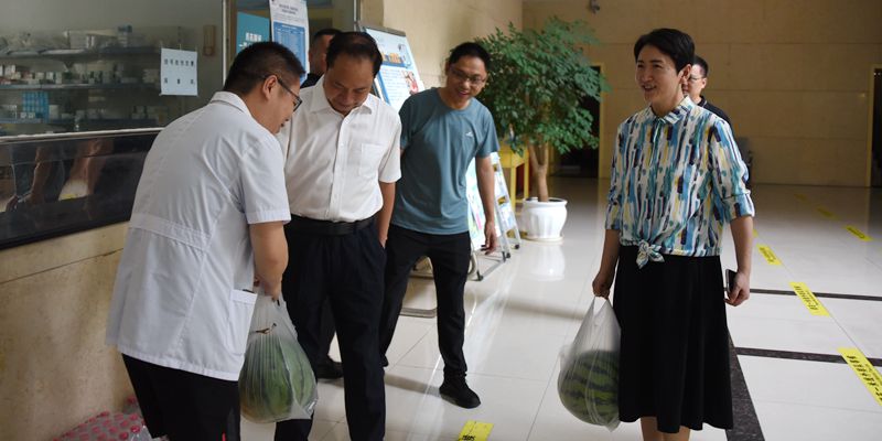 校领导还看望慰问了坚守学生食堂、校门门岗、校医院、图书馆的工作人员,送去了消暑物资,感谢他们冒着酷暑奋战在工作一线,叮嘱他们在坚守岗位的同时注意防暑降温,确保学校暑期各项工作平稳运行。