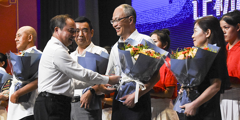 9月7日下午,我校在拏云学生活动中心隆重举行庆祝第39个教师节大会。大会为33名优秀教师颁奖、向荣休教师献礼,新入职教师庄严宣誓。党委书记黄大勇出席会议并讲话,全体在家校领导,受表彰教师、教职工代表、学生代表参加大会。