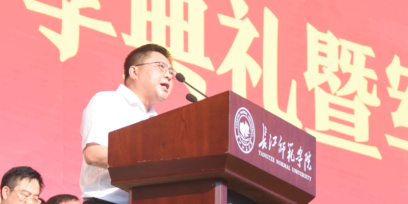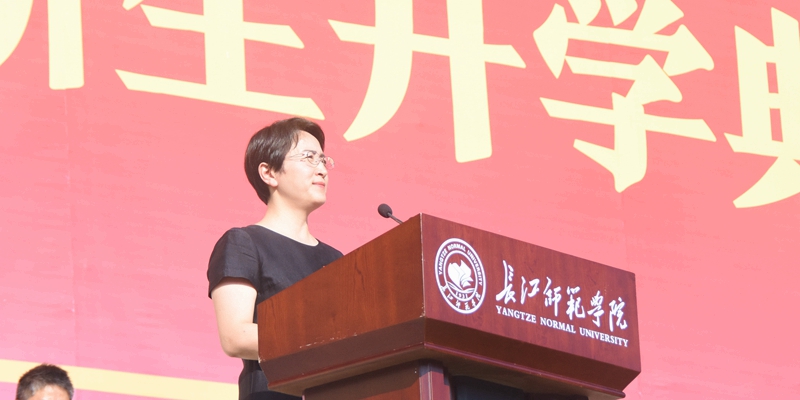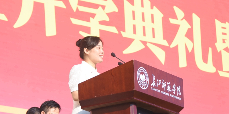 化学化工学院教师张婷作为教师代表发言,她希望同学们脚踏实地、自强不息,用拼搏和汗水走出属于自己的路,在青春的赛道上跑出最好成绩。