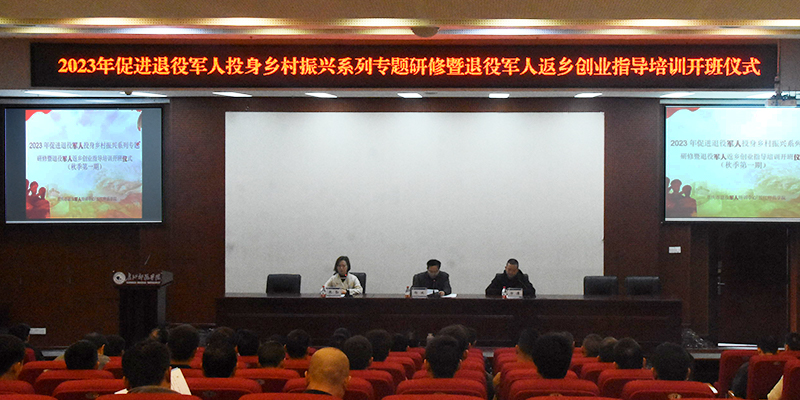 11月13日上午,2023年促进退役军人投身乡村振兴系列专题研修暨退役军人返乡创业指导培训(秋季第一期)在我校开阳学术报告厅开班。副校长杨双、重庆市军培中心培训三部部长郑潇、重庆市退役军人培训中心培训三部高级业务主办袁学凯,及来自全市各区县有退役士兵身份的返乡创业者80余人参加了开班仪式。