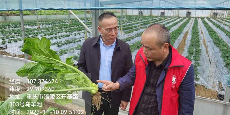 11月10日,涪陵区榨菜产业发展中心负责人到涪陵区百胜镇桂花村调研特早熟榨菜新优品种研发与示范情况,我校现代农业与生物工程学院选育的特早熟榨菜品种29和62获高度肯定。