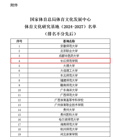 近日,国家体育总局体育文化发展中心公布了体育文化研究基地名单(2024-2027年),我校再次成功入选。