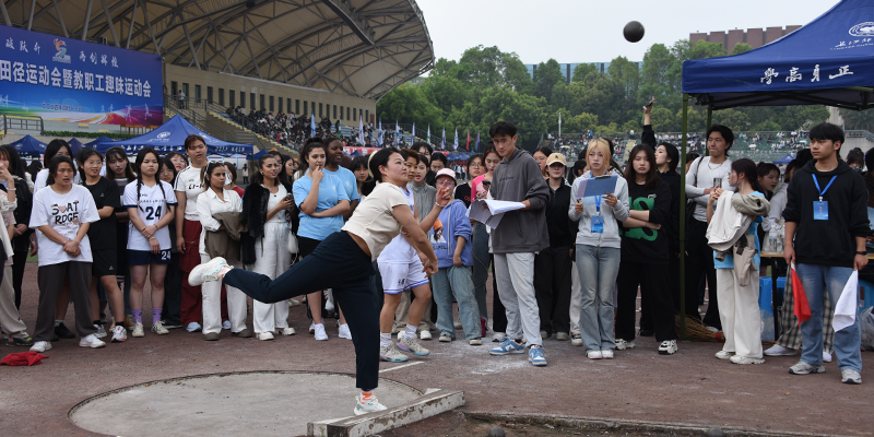 在紧张激烈的赛场角逐中,运动健儿们大展身手,为集体的荣誉奋勇争先、突破自我、默契配合,展现出高超的竞技水平和绝不言弃的体育精神。起跑、冲刺、交棒……接力赛中,他们步伐矫健,目光坚毅,交接默契,拼尽全力,接力棒传递着信任与团结、连接了勇气与力量;贴颈、撤步、弯腰……铅球比赛中,投掷动作一气呵成,腰身的力量瞬间迸发,赢得围观师生阵阵掌声;助跑、加速、起跳……跳远健儿们纵身一跃,在空中划出美丽的弧线,落地溅起的细沙在太阳下闪耀着荣光。行健体育场上,呐喊嘶吼此起彼伏,掌声和加油声东西接续,多巴胺的增加和分贝的攀升合奏着青春的交响曲。