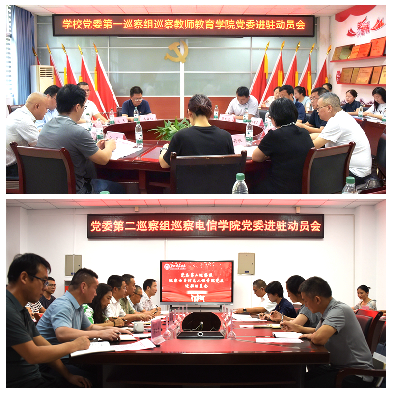 1011日下午,第四届党委第六轮巡察进驻教师教育学院党委和电子信息工程学院党委工作动员会,分别在崇仁楼408、格物楼1210会议室召开。党委常委、纪委书记、监察专员、党委巡察工作领导小组副组长付晓容,党委常委、副校长许俊强分别出席会议并讲话。党委巡察工作领导小组成员单位,党委巡察办公室,党委第一巡察组、第二巡察组全体成员,被巡察学院党委领导班子及师生代表参加会议。会议由被巡察学院党委书记主持。