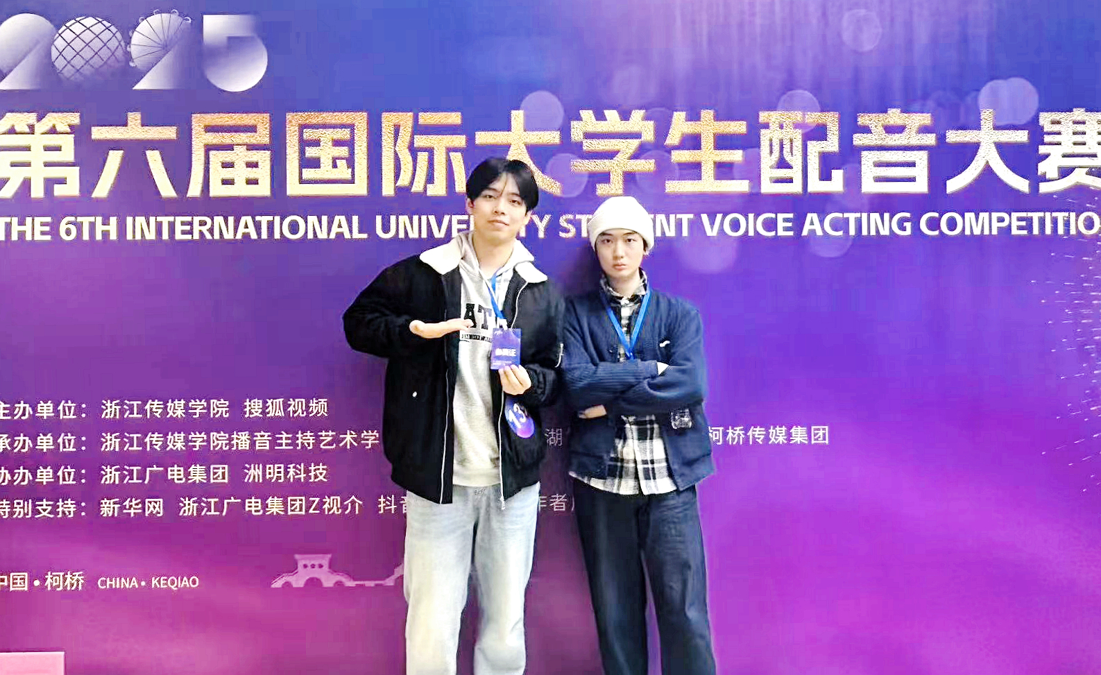 10月29日至11月1日,2025第六届国际大学生配音大赛暨鉴湖声音艺术季在绍兴柯桥体育馆举行,来自全球437所高校的青年学子汇聚一堂,中国、俄罗斯、日本、韩国、乌兹别克斯坦、新加坡、缅甸、马来西亚等国的选手以声音为笔、以光影为媒,共享这场跨越语言与文化的青春盛宴。我校传媒学院学生高翔、许讯以优异成绩斩获影视赛道全国特等奖,这是我校播音与主持艺术学专业学生继去年之后,连续第二年获得该奖项。