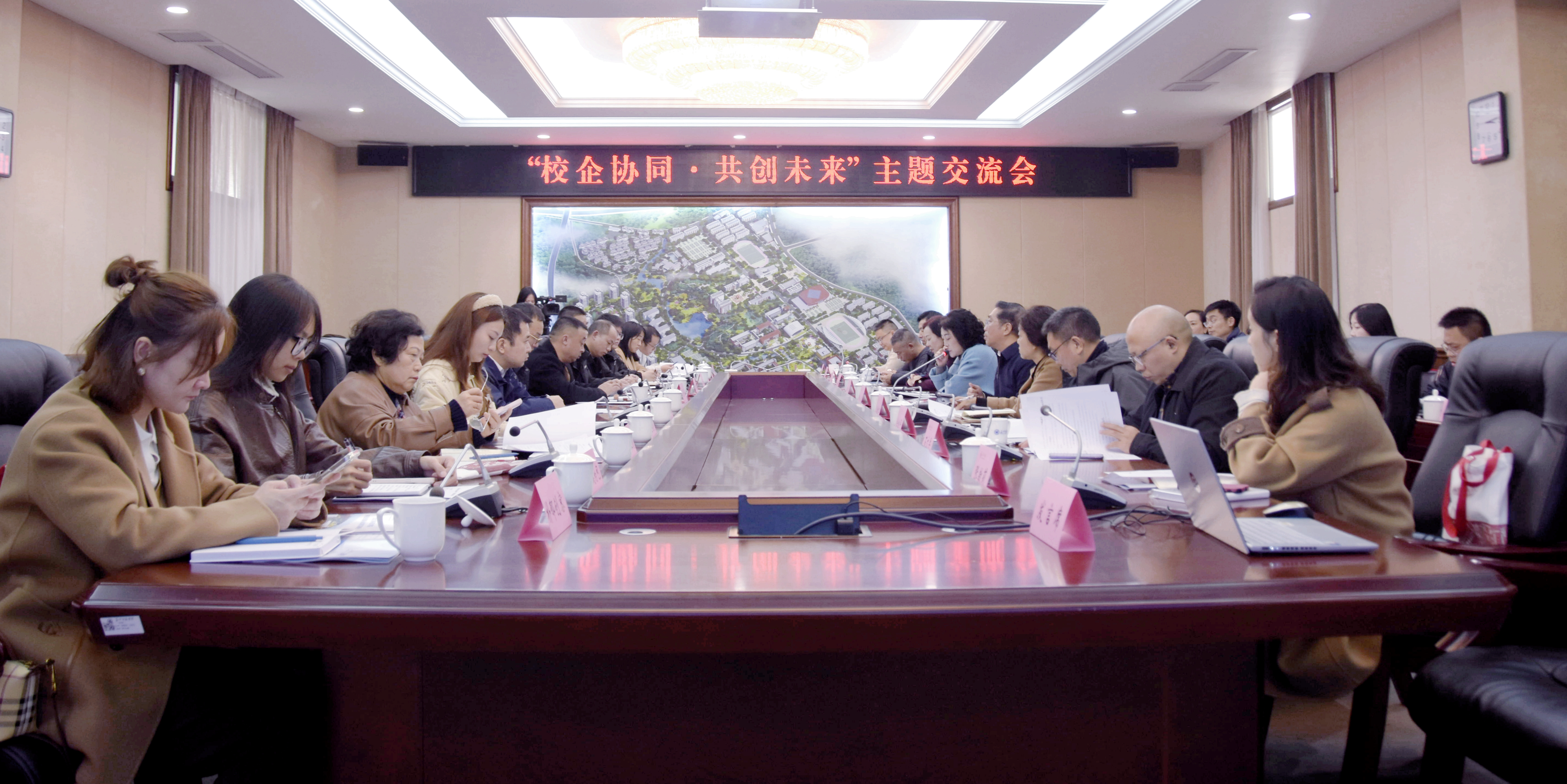 11月27日下午,我校联合涪陵区侨联、涪陵区妇联、涪陵欧美同学会共同举办 “校企协同·共创未来”主题交流会,协同破解产业链、教育链融合堵点,推动校企精准对接。党委副书记向小川、涪陵区侨联主席汪继红、涪陵区妇联副主席韩曦,相关部门主要负责人和教师代表,及受邀企业代表参加会议。