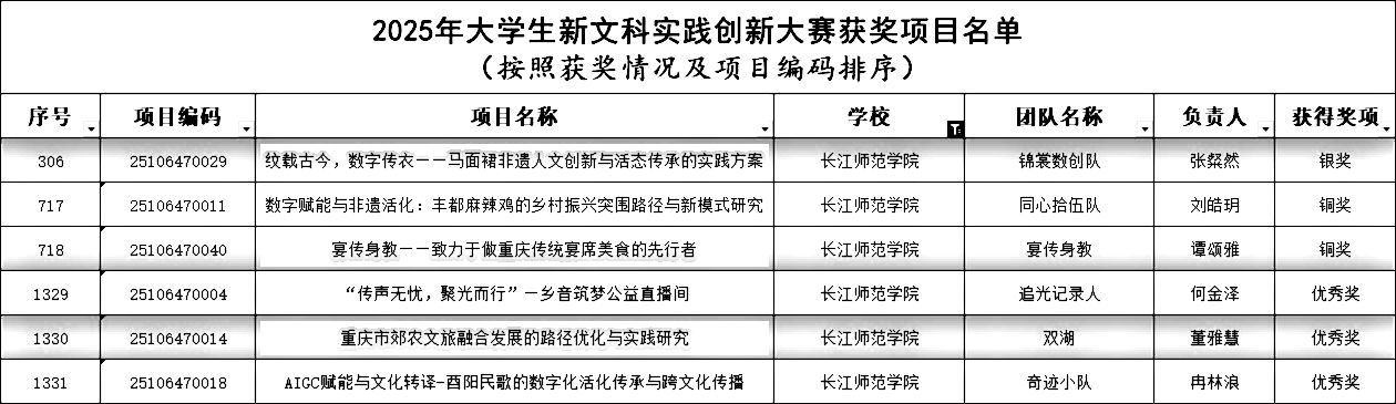11月29日至30日,由全国新文科教育研究中心主办,西安交通大学、山东大学承办的第二届大学生新文科实践创新大赛决赛现场赛在西安举行,我校学生团队荣获银奖1项、铜奖2项、优秀奖3项。